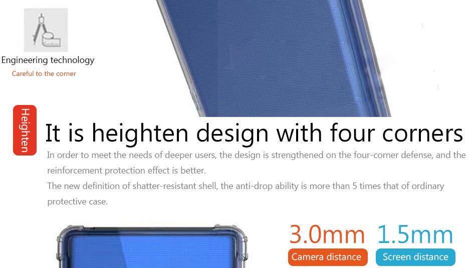 Soft TPU case protects the back and edges of your phone from scratches and hits, and extra bumper protections at four corners offer shock cushion when drop by accident.