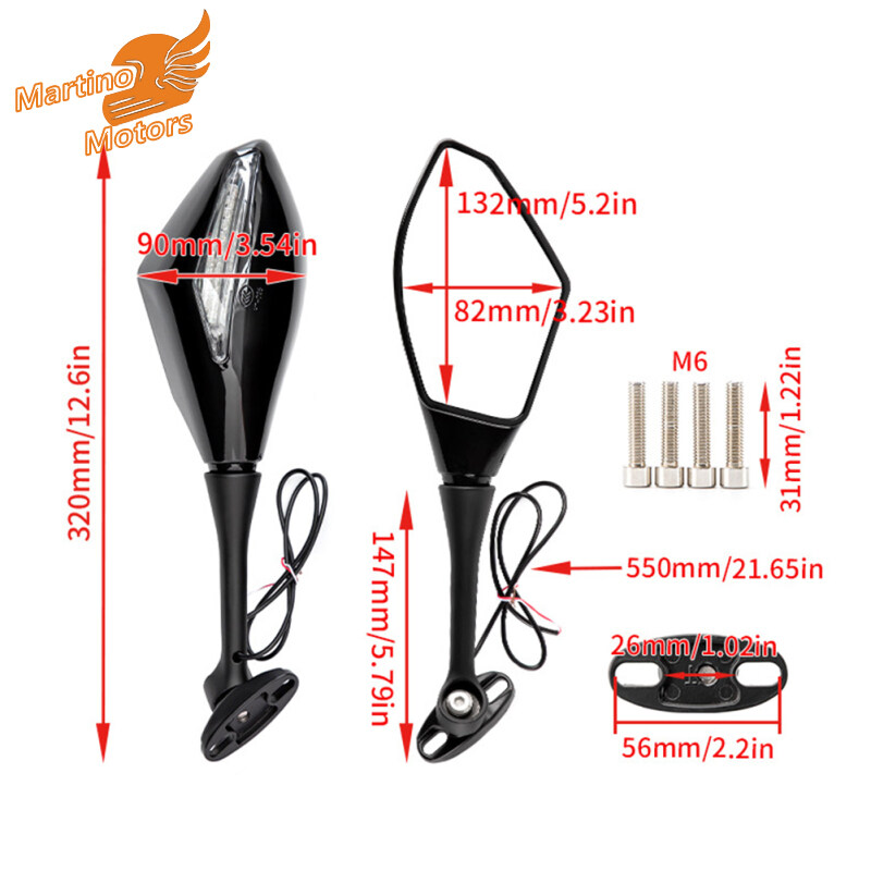 1 Pair Motorcycle Rearview Mirrors With Light High Brightness Led Turn Signal Mirror Modified Accessories