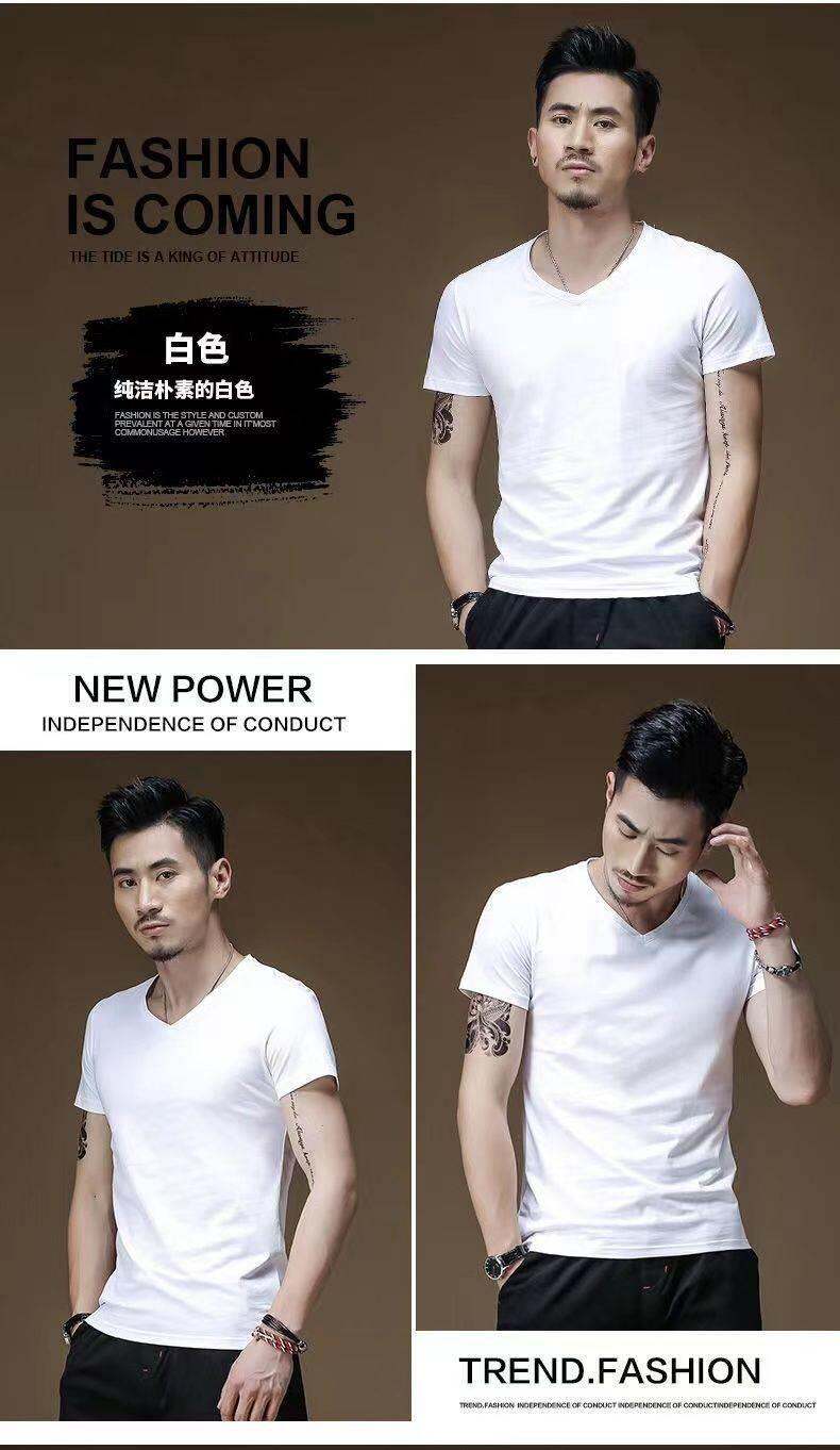 3vyy phong cách mới thời trang ngắn tay rắn màu người đàn ông V-Neck nửa đồ lót lót áo thun cơ thể tay áo lụa cơ thể sửa chữa T-shirt 1/