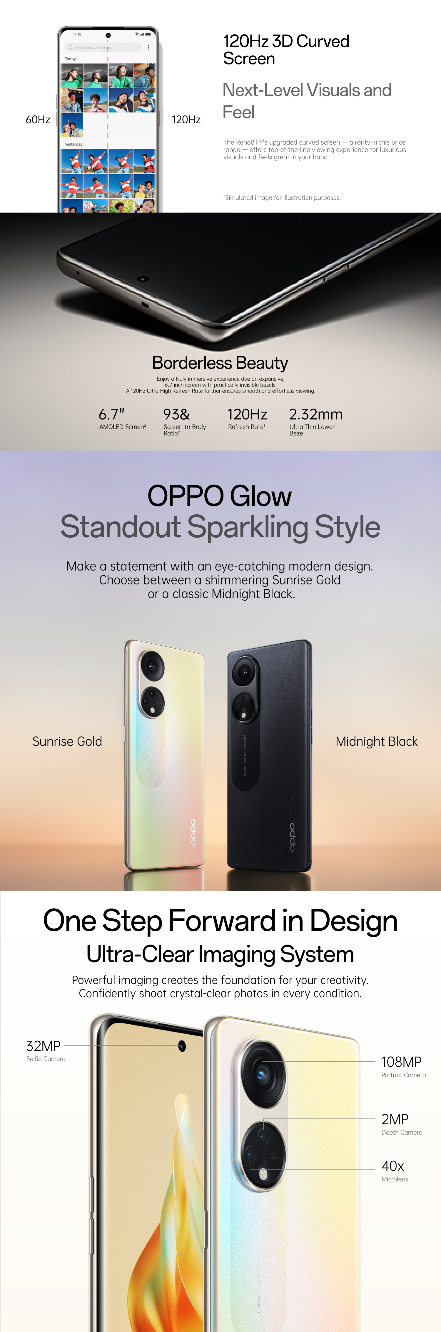 OPPO Reno8 T 5G/108MP Camera chân dung/Màn hình cong 3D 120Hz/67W SUPERVOOC/Tai nghe không dây thực miễn phí $79