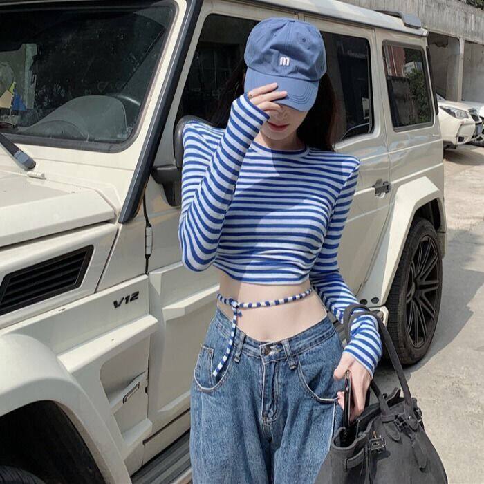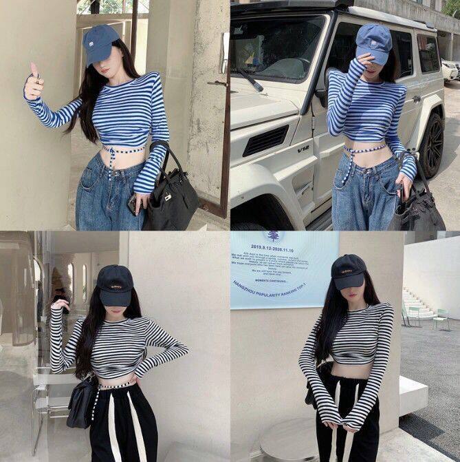Áo thun sọc dài tay đầy màu sắc Bump Stubby Top