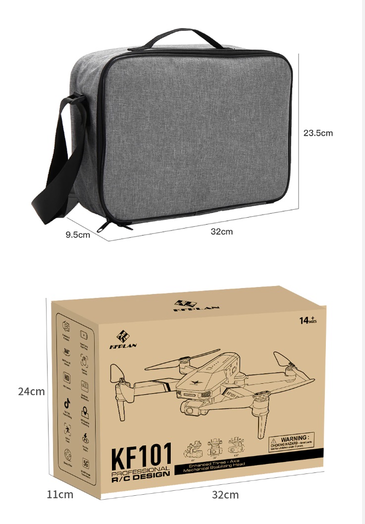 Item No: KF101 MAX Color :Dark Grey Frequency :2.4G (Remote Control) & 5G (Mobile Phone) Drone Battery :11.1V 2500mAh Control Distance : 3KM For KF101 MAX Wifi Image Transmission Distance : 3KM Flight Time : About 25 min Charging Time : About 6 hours USB Charging : 5V/2A Drone Weight : 613g (Needs drone registration in Singapore) Remote Control Battery : 3.7V 1000mAh Transmitter Charging Time : About 60min Transmitter Operating Time : About 10 hours Camera : 3 -Axis Electronic Stabilization Gimbal EIS electronic image stabilization Camera Camera Lens : 120° Photo Resolution (APP) : 3840*2160 P Video Resolution (APP) : 1280*720 P Photo Resolution (SD Card) : 2560*1440 P Video Resolution (SD Card) : 2560*1440 P Frame Rate : 30fps Photo Format : JPG Video Format : MP4 or AVI Adjustable Angle :90° Gesture Shooting : 1-3 M GPS Follow Me : 30 M+ SD Card Supports 32G-128G(Not Included) Mobile Device System Version : iOS 8.0 or later / Android 4.4.4 or later